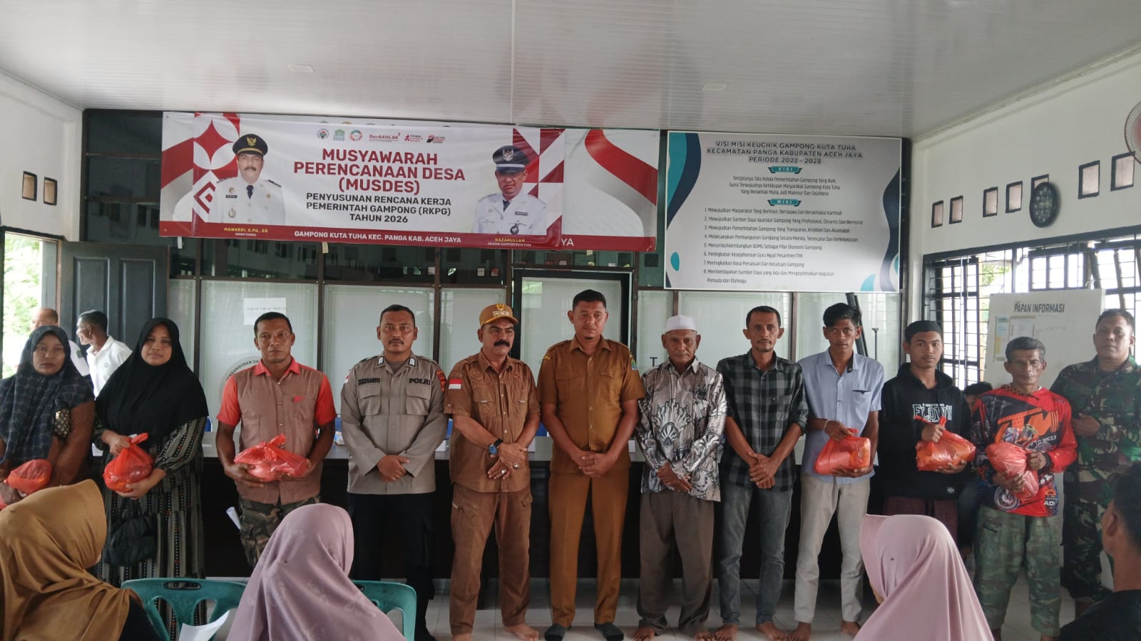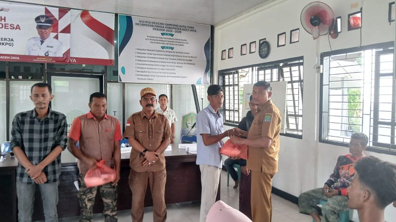 Penyerahan bantuan berlangsung pada Senin (9/2/2026) di kantor Desa Kuta Tuha, dihadiri Keuchik dan Camat Panga.