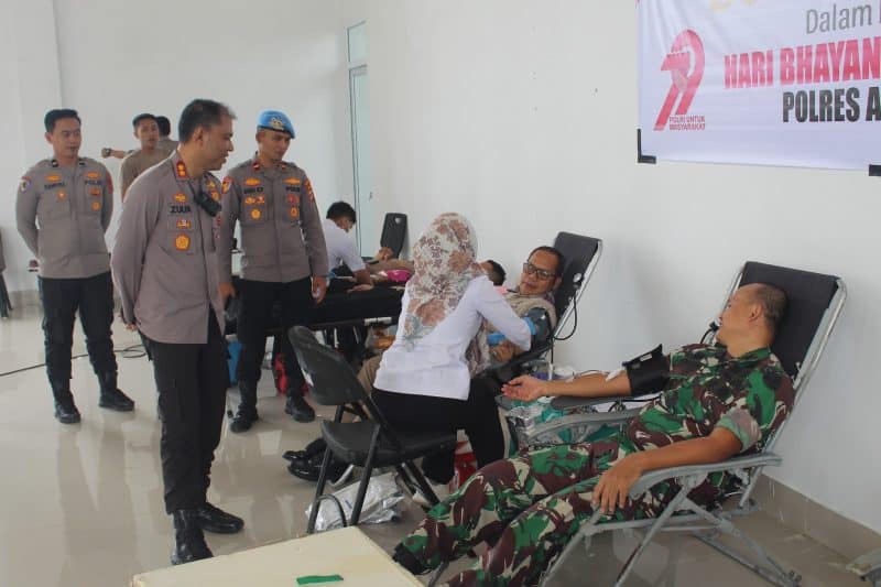 “Sebelum pengambilan darah, para pendonor terlebih dahulu mengikuti pemeriksaan fisik umum dan laboratorium sederhana seperti pengecekan golongan darah dan kadar hemoglobin (HB). Setelah dinyatakan memenuhi syarat, baru dilanjutkan dengan proses pengambilan darah,” ujar Kapolres Aceh Jaya.