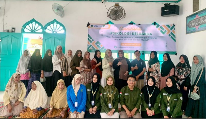 TAGACEH – Mahasiswa Kuliah Pengabdian Masyarakat (KPM) Tematik Fakultas Psikologi UIN Ar-Raniry menggelar kegiatan Sosialisasi Psikologi Keluarga di Gampong Rumpet, Kabupaten Aceh Besar, Sabtu (8/11/2025).