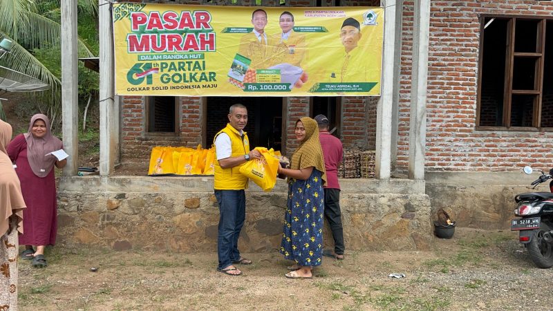 “Melalui kegiatan ini kami ingin berbagi dan membantu masyarakat mendapatkan kebutuhan pokok dengan harga lebih terjangkau. Ini juga sebagai wujud nyata kehadiran Partai Golkar di tengah masyarakat,” ujarnya.