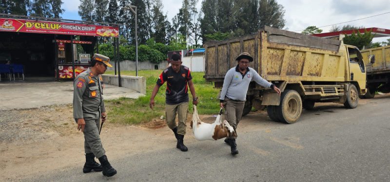 TAGACEH – Petugas Satpol PP bersama Tim Terpadu berhasil mengamankan/menjaring 20 ekor kambing yang berkeliaran di jalan raya meliputi Kuala Meurisi Keutapang, Padang Datar, Krueng Sabee dan Dayah Baro.