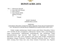 TAGACEH – Pemerintah Kabupaten Aceh Jaya melalui Surat Edaran Bupati Nomor 11 Tahun 2015 Tanggal 7 Oktober 2025, mengingatkan kembali seluruh Aparatur Sipil Negara…
